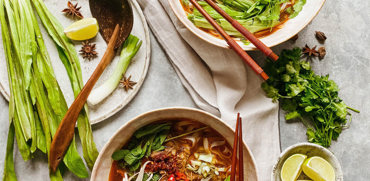 Z zupami Pho mogłabym eksperymentować absolutnie bez końca. Inspiracją do tej Pho była wizyta w jednej z moich ulubionych restauracji w Londynie. Wołowa zupa Pho z dodatkiem pysznej ostrej pasty Sa Tê oraz pasta z chili i krewetek. Połączenie długo gotującego się bulionu, tj. u mnie 12 godzin oraz świeżych ziół i limonki z pewnością czyni z tej zupy najlepszą zupę świata.