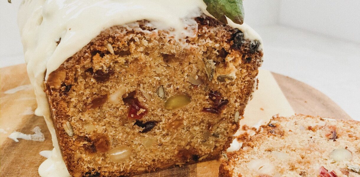 Mikserem ucieramy masło, powoli dodając jajka, a następnie cukier. Gdy już składniki są dobrze utarte, zwalniamy obroty miksera i dodajemy mąkę z proszkiem. Na koniec dodajemy rozdrobnione bakalie oraz wanilię. Całość przelewamy do foremki o długości 23cm, wcześniej wysmarowanej masłem i obsypanej bulką tartą. Pieczemy przez godzinę w temperaturze 170-180 ‘C. Gotowe ciasto wyjmujemy z pieca i zostawiamy do zupełnego wystygnięcia. Kiedy jest już zimne wyjmujemy z foremki. Rozpuszczamy białą czekoladę, dosłownie przez parę sekund w garnuszku na ogniu, a następnie polewamy całe ciasto. Układamy truskawki i wstawiamy do lodówki do wystygnięcia.