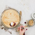 W międzyczasie lekko podgrzewamy dżem, aby był łatwy do rozsmarowania. Przygotowujemy nadzienie. Ubijamy serek z crème fraîche, dodając ksylitol. Chowamy do lodówki na 30 minut.