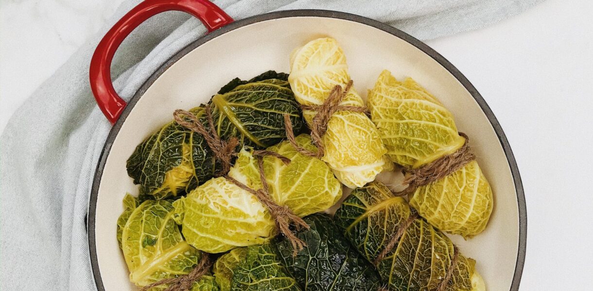 - 2 włoskie kapusty (ugotować pod przykryciem przez około 40 min na małym ogniu, a następnie delikatnie oderwać liście)