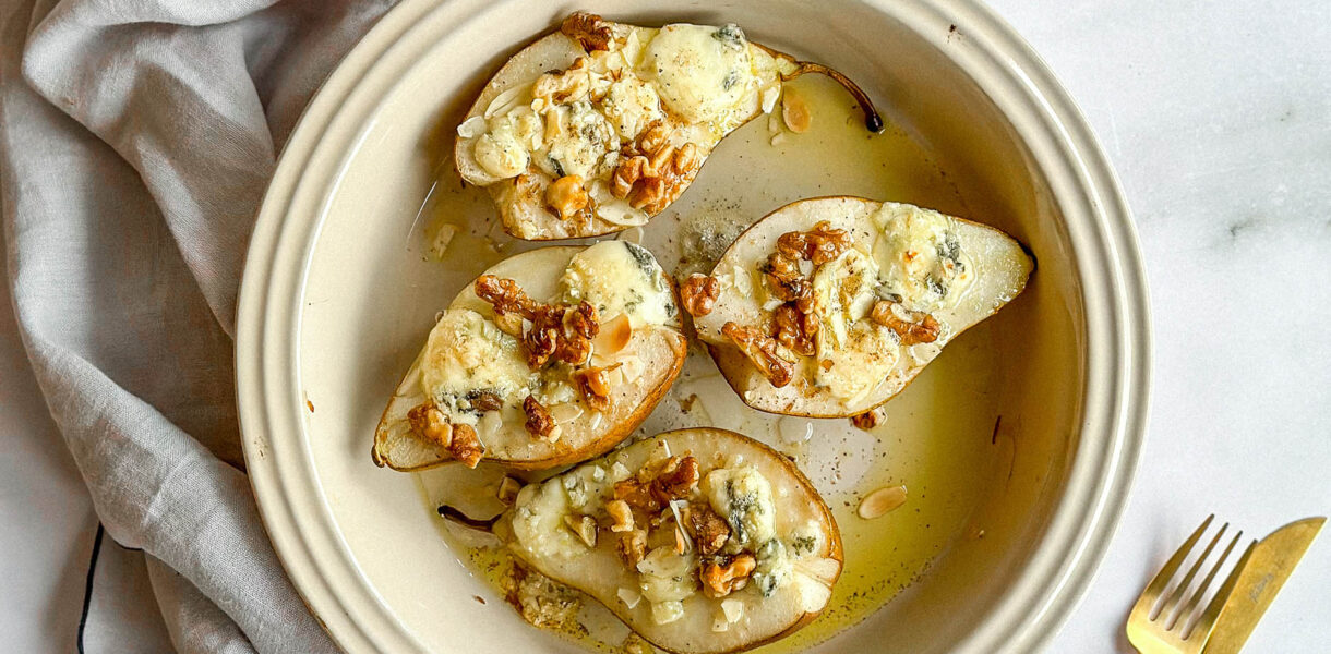 Jesienne gruszki z orzechami, serem pleśniowym i syropem z agawy mają wiele zalet, zwłaszcza w okresie jesienno-zimowym. Po pierwsze, gruszki w tym czasie są w pełni dojrzałe, co sprawia, że są bardziej słodkie, soczyste i aromatyczne. Ich delikatna konsystencja idealnie komponuje się z innymi składnikami tego dania. Dodatkowo, dodatek orzechów włoskich do pieczonych gruszek dostarcza nam cennych składników odżywczych, takich jak zdrowe tłuszcze, błonnik i witaminy. Orzechy w płatkach dodają również chrupkości i intensywności smaku. Ser pleśniowy, w tym przypadku danish blue, nadaje daniu wyjątkowy smak i kremową teksturę. Jest to idealne połączenie z delikatnymi gruszkami, tworząc kontrast smakowy, który zachwyci podniebienia. Nie można zapomnieć o syropie z agawy, który dodaje słodyczy i lekko karmelowy posmak do owoców i serowego nadzienia. To idealne dopełnienie całości. Jest to idealna propozycja na jesienne wieczory w ciepłym wnętrzu.