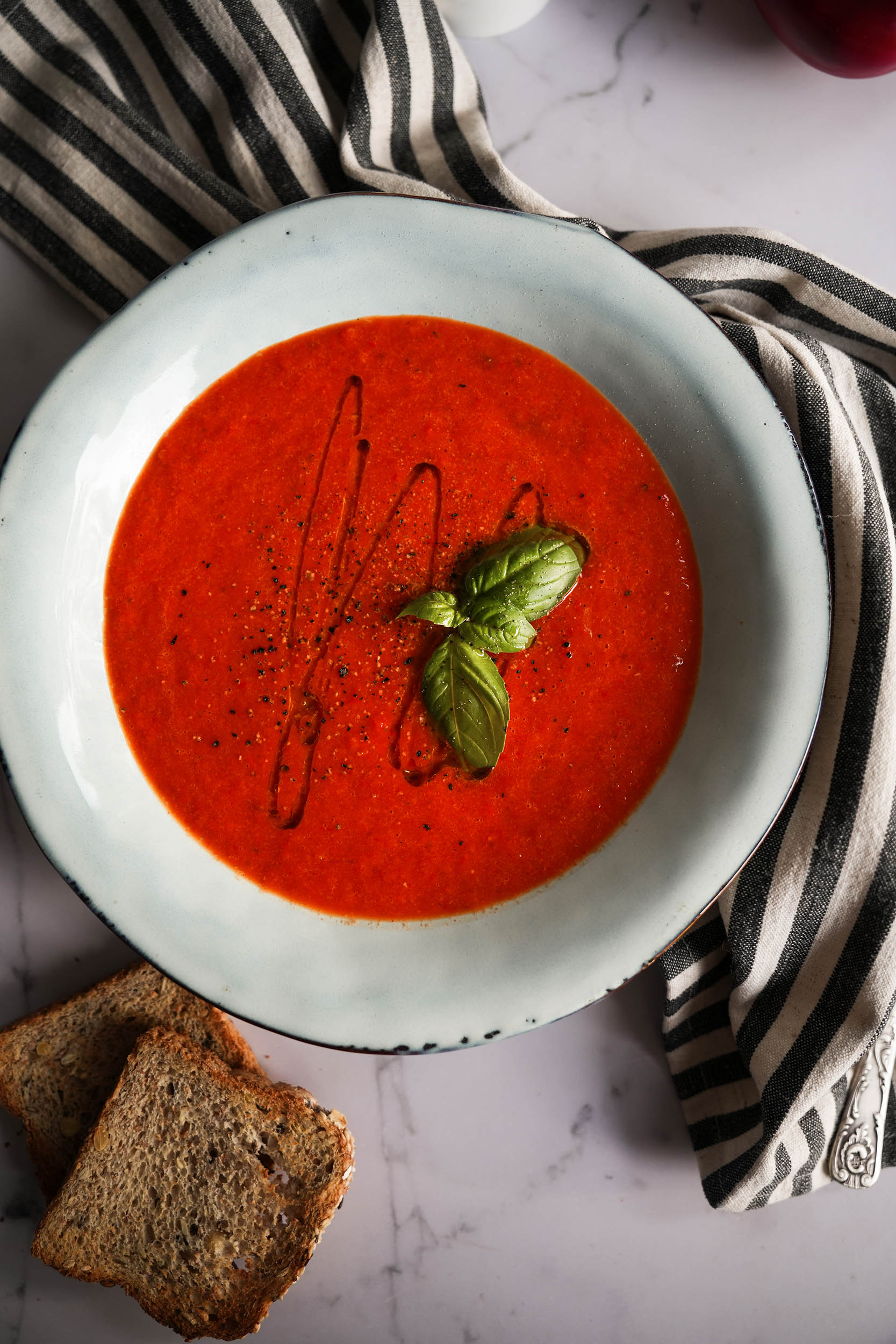 - Podawaj udekorowane świeżą bazylią, skropione oliwą i posypane pieprzem.