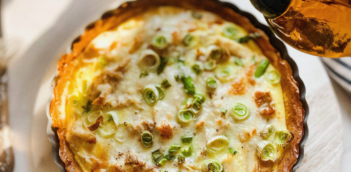 Ciasto do tego dania zrobione jest z ziemniaków, dzięki czemu quiche ma delikatniejszą teksturę oraz mniej kalorii. Nadzienie z wędzonego pstrąga super komponuje się z ziemniakami, szparagami oraz serowo – jajeczną masą. Jeśli nie macie szparagów, możecie użyć np. papryki czy też cukinii. Jako dodatek do quiche, proponuję sałatkę ze świeżych warzyw z sosem winegret.