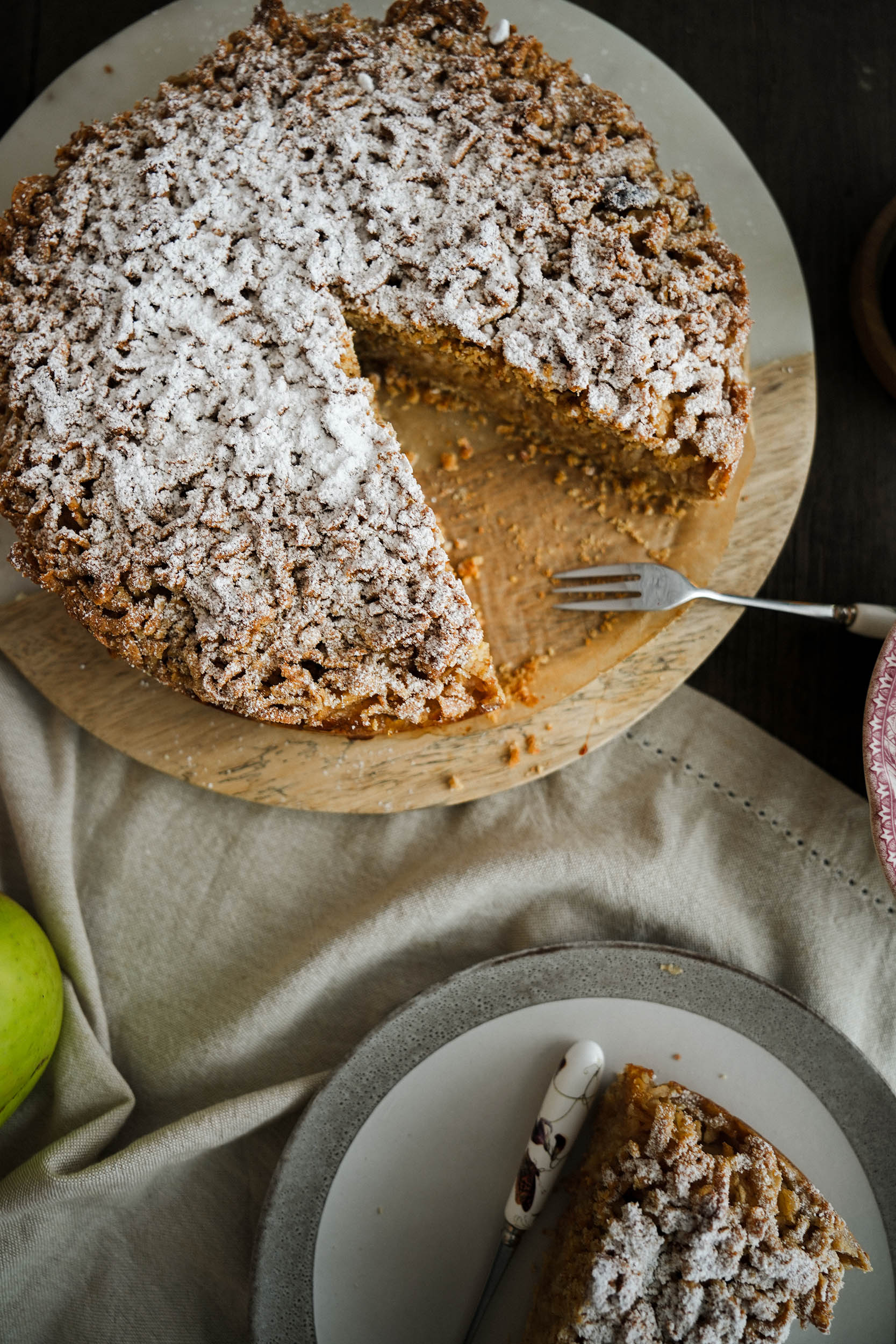 - Wyłóż jabłka, posyp orzechami.