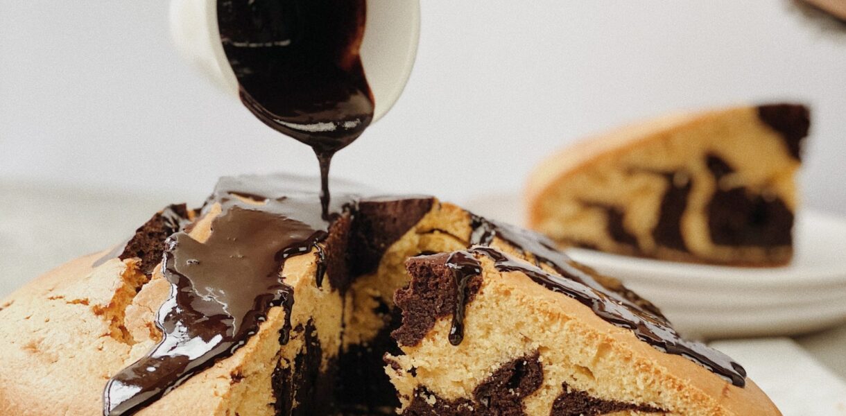 Na koniec dodać zapach pomarańczowy. Przygotować tortownicę o średnicy 23 cm. Lekko posmarować masłem i oprószyć bulką tartą. Ciasto nalewać po trochu raz jasne, raz ciemne, cały czas od środka. Piec w temperaturze 170°C przez 40 minut. Kiedy nasze ciasto jest już upieczone i zimne szykujemy polewę. Masło bardzo lekko podgrzać, tylko do rozpuszczenia. Wyłączyć z ognia i dodać pozostałe składniki. Rozcierać do uzyskania jednolitej masy. Zimne ciasto polać polewą. Smacznego.