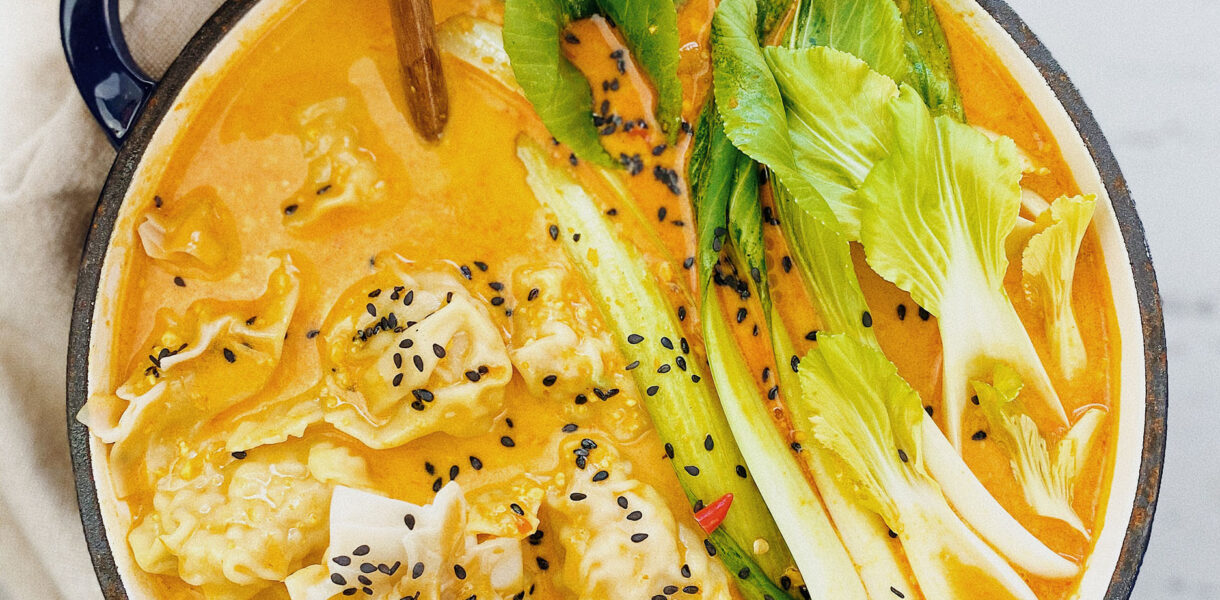 Lekko ostra zupa na bazie kurkumy, mleka kokosowego i trawy cytrynowej już sama w sobie jest przepyszna, jeśli jeszcze dodać do niej pyszne pierożki wonton, to już prawdziwa uczta w azjatyckim stylu. Przygotowanie takiej zupy nie zajmie pięciu minut, ale z czystym sumieniem mogę powiedzieć, że naprawdę warto zrobić ją choć raz w życiu, a jestem pewna, że zagości u was na dobre, tak jak to było u mnie.